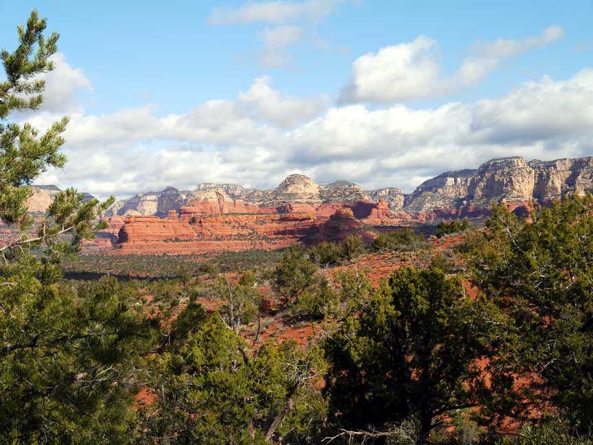 Description: The Chuck Wagon Trail is an adopted bike trail. It goes east from Dry Creek Road, essentially parallel with FR 152 to near the Brins Mesa Trail. There are some terrific views from this trail. It is partially shaded and is relatively level. It intersects the Mescal Trail and further on there is a trail leading to Devil's Bridge.